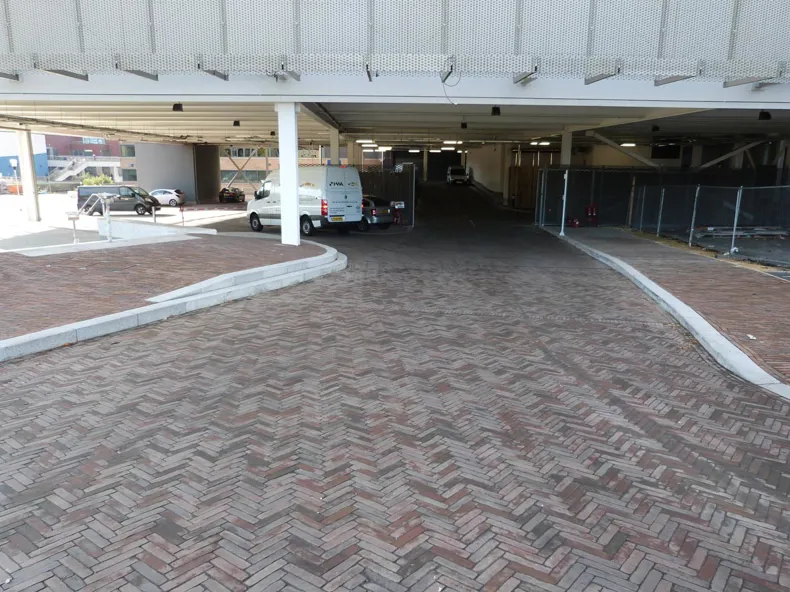 Surface water run-off from the impermeable section of clay paving was directed towards the permeable sections of clay paving providing the drainage for the entire paved area.