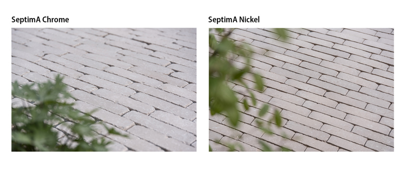 Both pavers feature the distinctive ECO-7-size of approx. 216 mm x 50 mm x 71 mm. SeptimA Chrome and SeptimA Nickel can be laid in a water-permeable manner, which is an added value for projects where rainwater infiltration is a requirement or a preference.