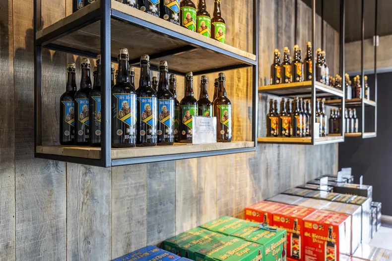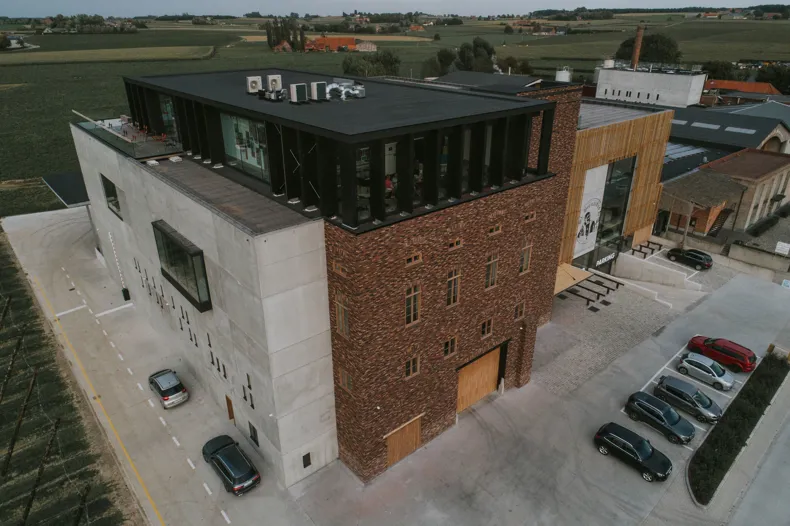 The St.Bernardus brewery is located in the peaceful rural setting of Watou. Besides the history of a family that is passionate about beer and the unique character of the beloved Abt 12 beer, the brewery holds another trump card, having recently invested in a new building with an experience shop and a unique rooftop bar. Architect Paul Lecluyse combined authenticity with contemporary elements in his design for the exterior. This vision was carried through to the interior which was created by interior architect Marie Lecluyse.