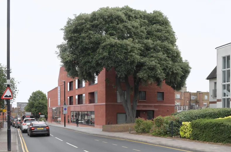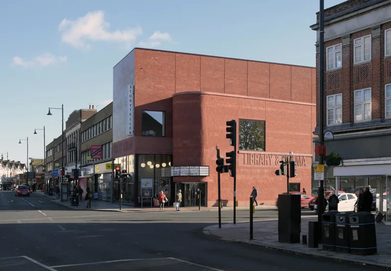 Mixed-use project with library, cinema and residential building for London suburb