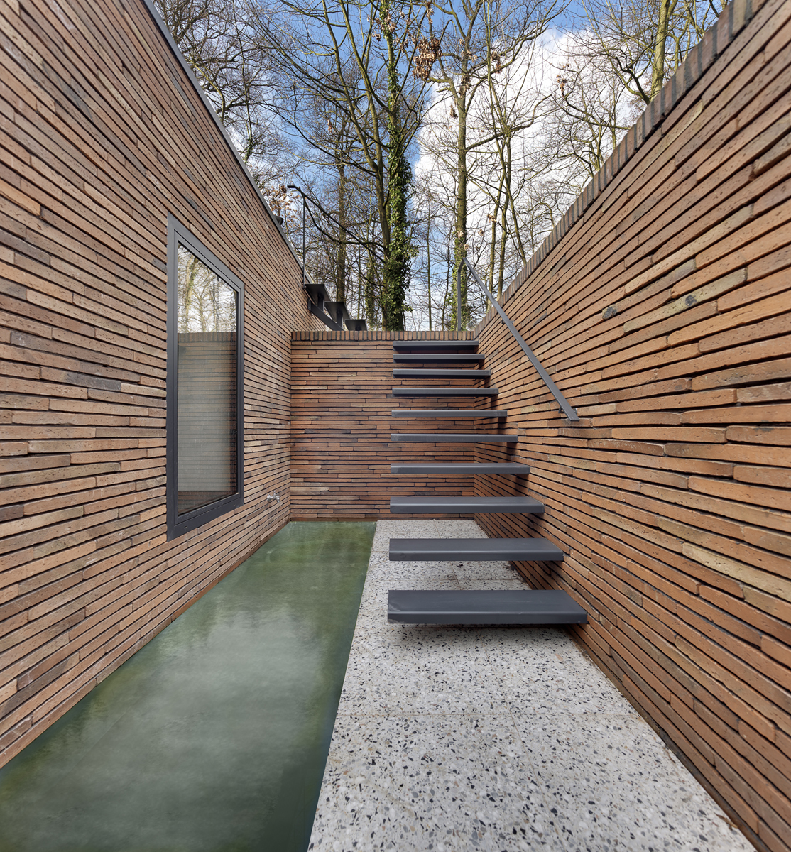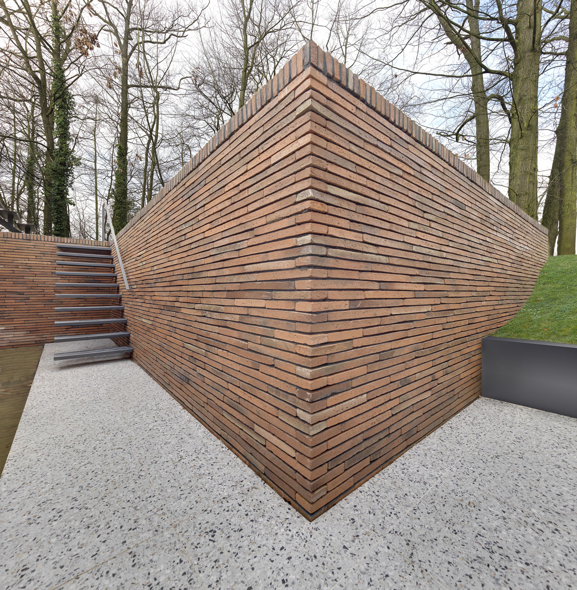 The new office is in actual fact an extension of the base and three-quarters of it is located below ground level. Taking this into account, Joeri decided to opt for red bricks in order to integrate the new structure into the existing building. His final choice fell on the handmade red infinitum 3003.