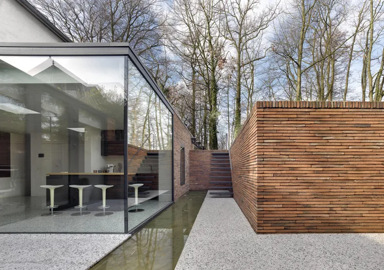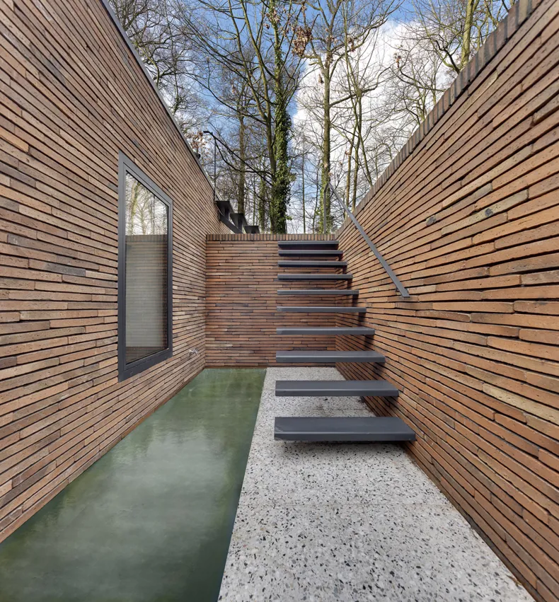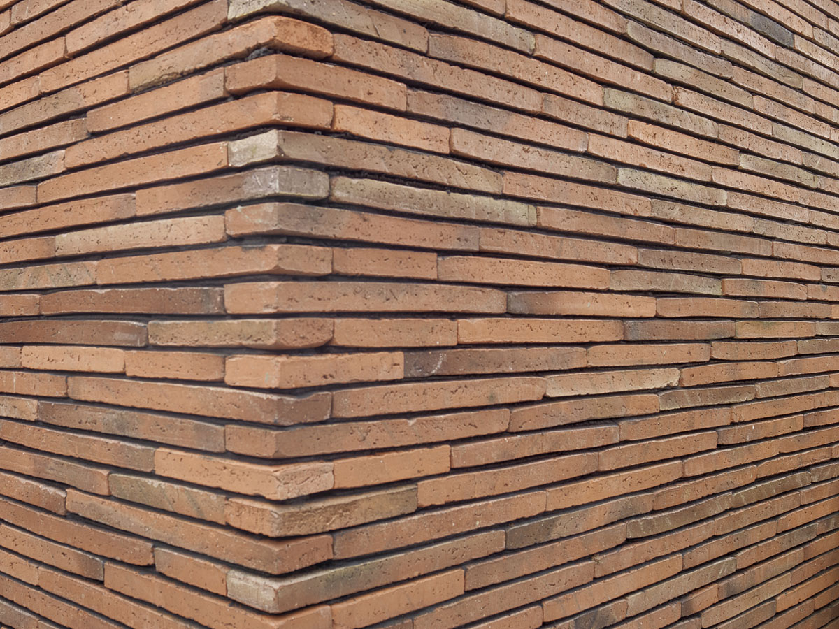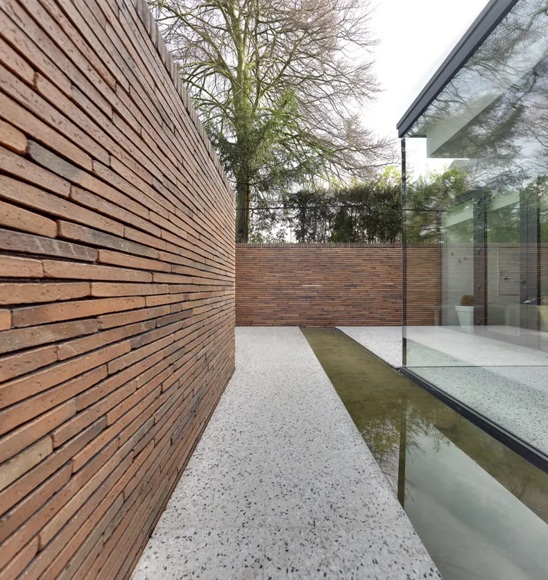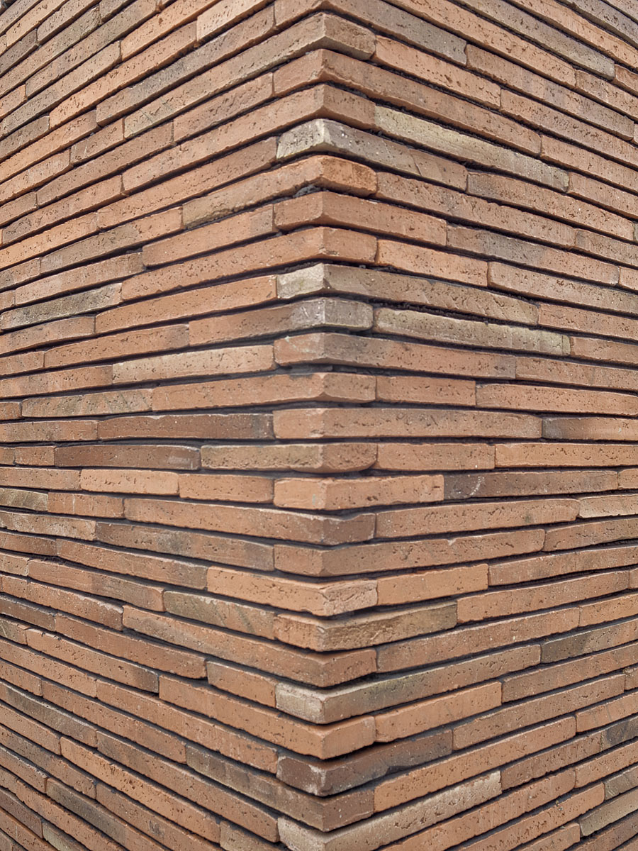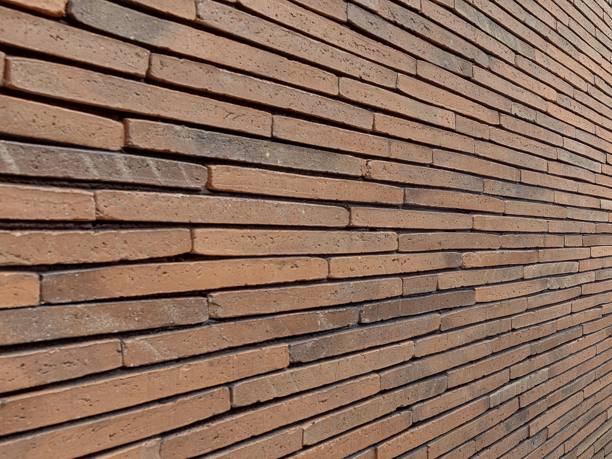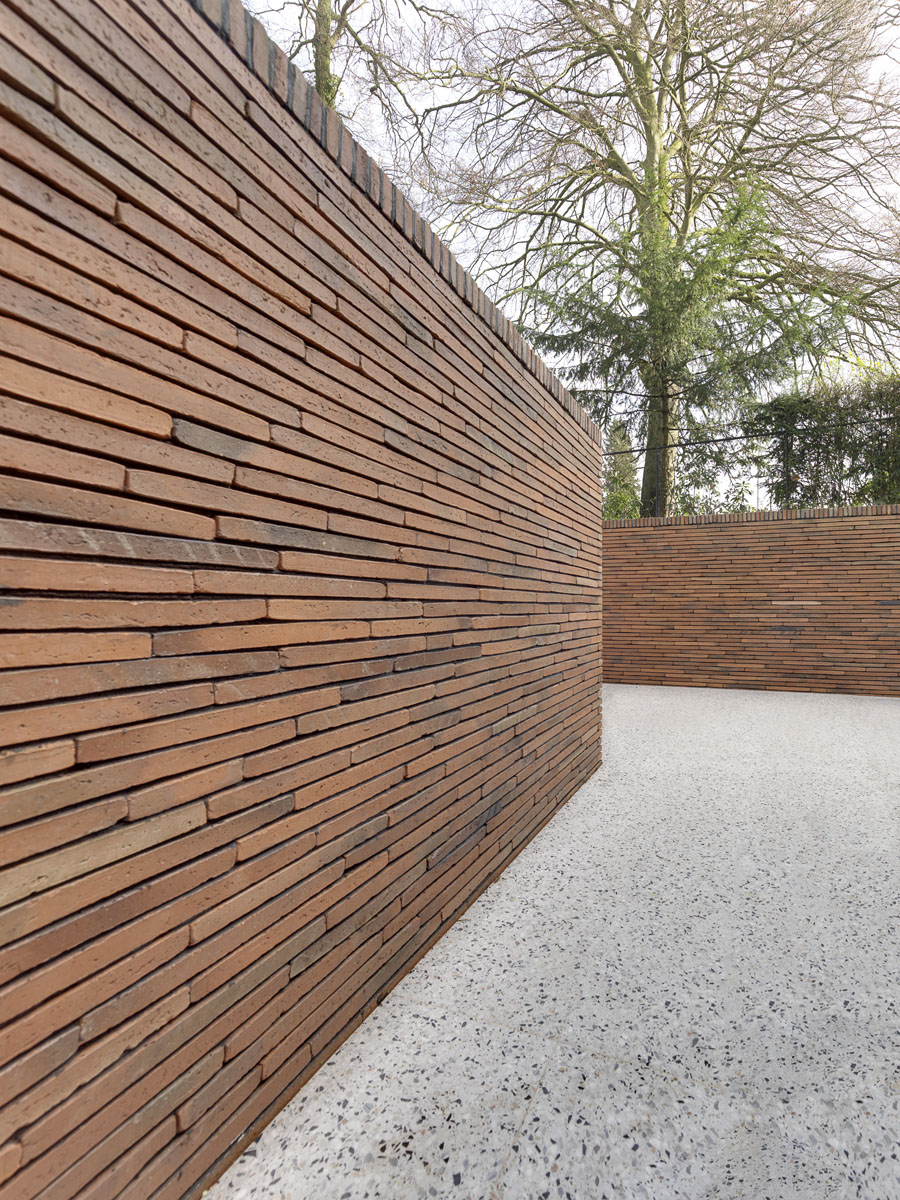 The bricks are laid in a random bond with a joint thickness of 8 mm. Despite the random bond, only full bricks were used for the masonry work, emphasizing the brick's horizontality even more. Who mentioned anything about an eye for detail?