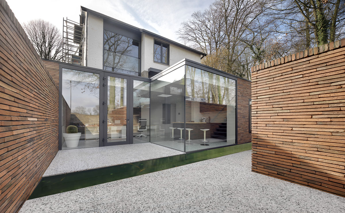When the project manager and the architect are one and the same person, the outcome is always awaited with keen anticipation. It invariably leads to unique realisations that exhibit great attention to detail. Joeri Dautzenberg wanted to create a modern workspace for his agency X-act Architecten adjacent to his own existing house.