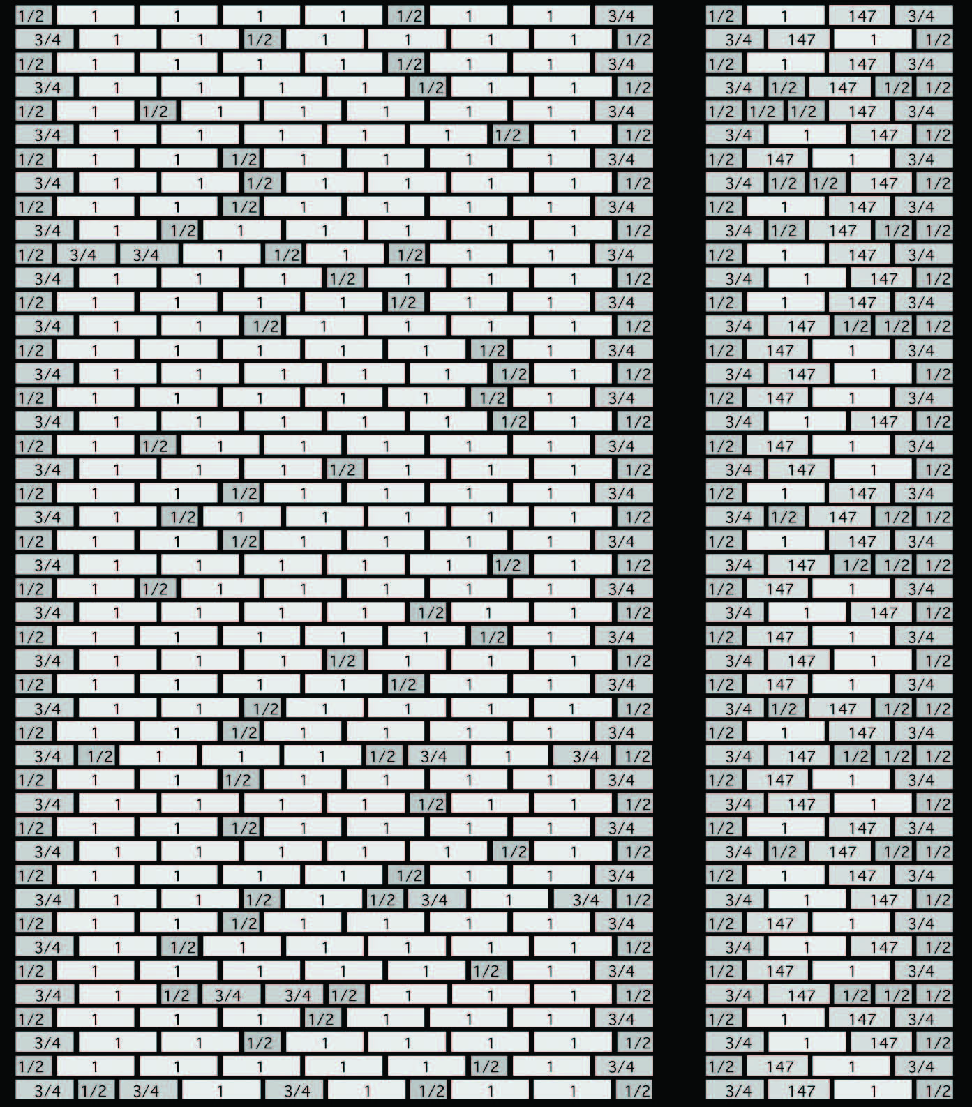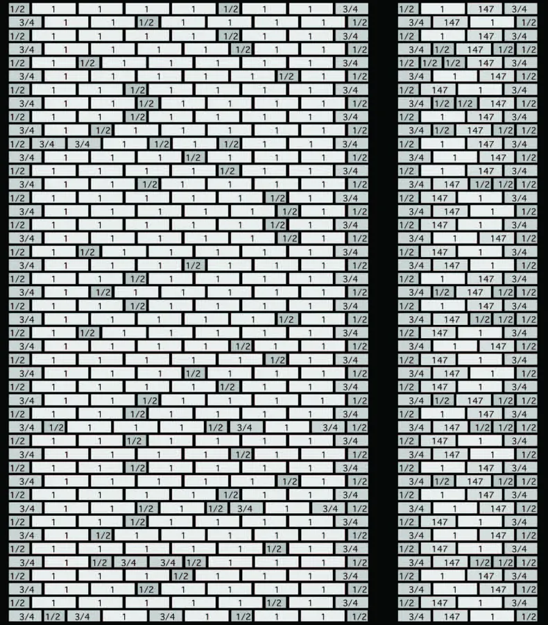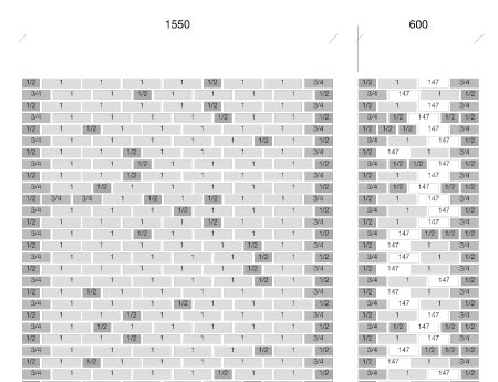 This gives a varied texture, which emphasises the ‘brickness’ of the wall and ensures that no cut bricks are wasted. In line with their general approach the bond was drawn out schematically to assure a perfect result.