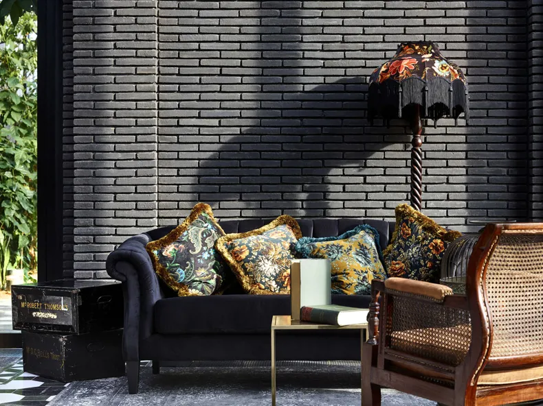 stretcher bond, recessed joint with a mortar colour similar to the brick