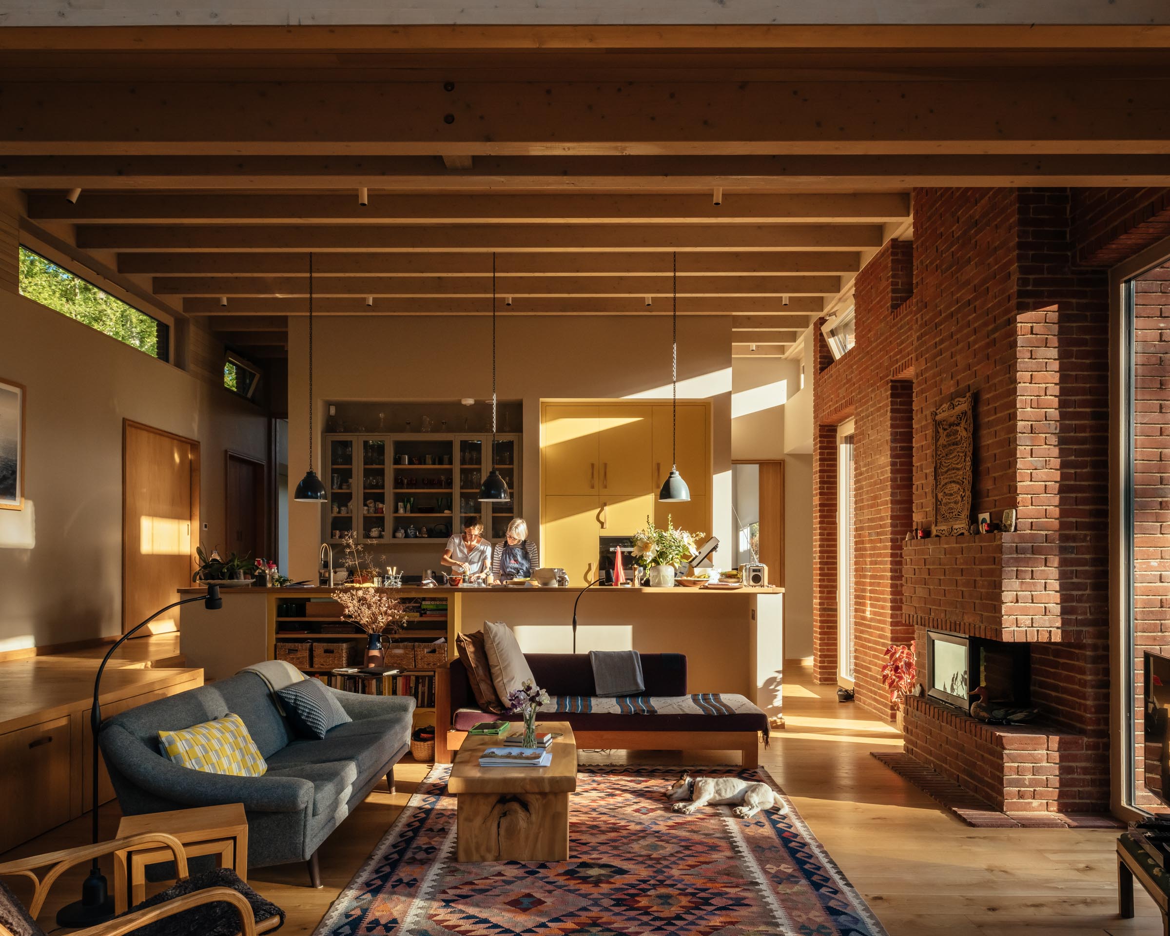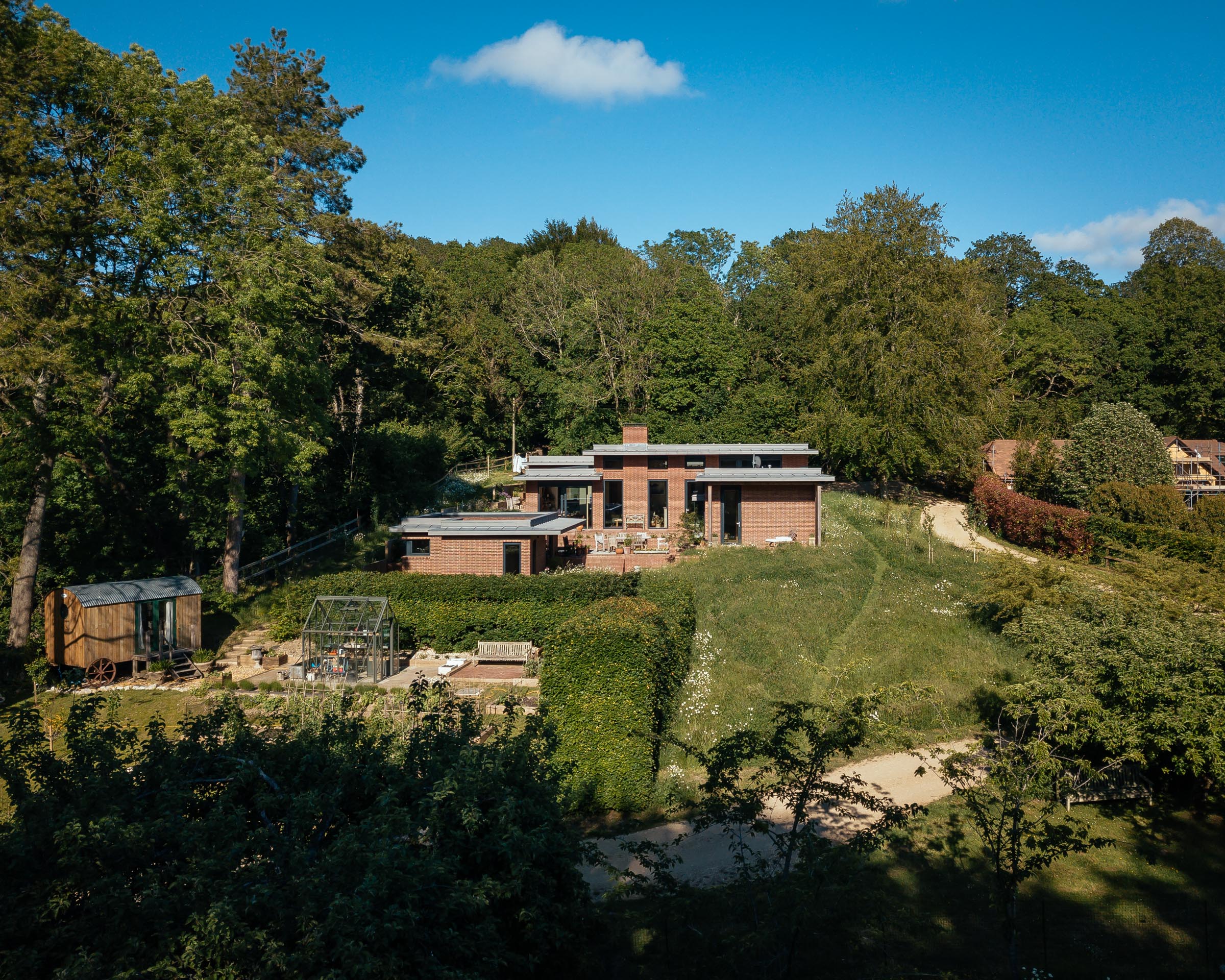 In the New Forest National Park district with intimate connections to the surrounding landscape, PAD studio designed a compact eco-conscious family home. The clients specifically chose to downsize from their property next door, with minimal energy consumption and maintenance, and a strong connection to the surrounding landscape. The existing cottage with sweeping views over the hills beyond was transformed into the ‘Gardener’s cottage’, a four-bedroom home in a warm red brick structure.