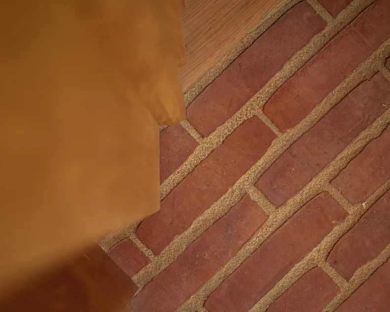 The relationship with the landscape, key to the design, is clearly enhanced by the use of the brick both inside and outside the house. Additionally, the red brick is also used in the steps and terraces around the house, resulting in a warm and unified whole hidden in the green scenery. The red-brown brick is an ecologically optimized ECO-7-size facing brick, hand-made and according to the Wasserstrich-method. The hand-made character is visible thanks to the powerful, natural colour nuances.