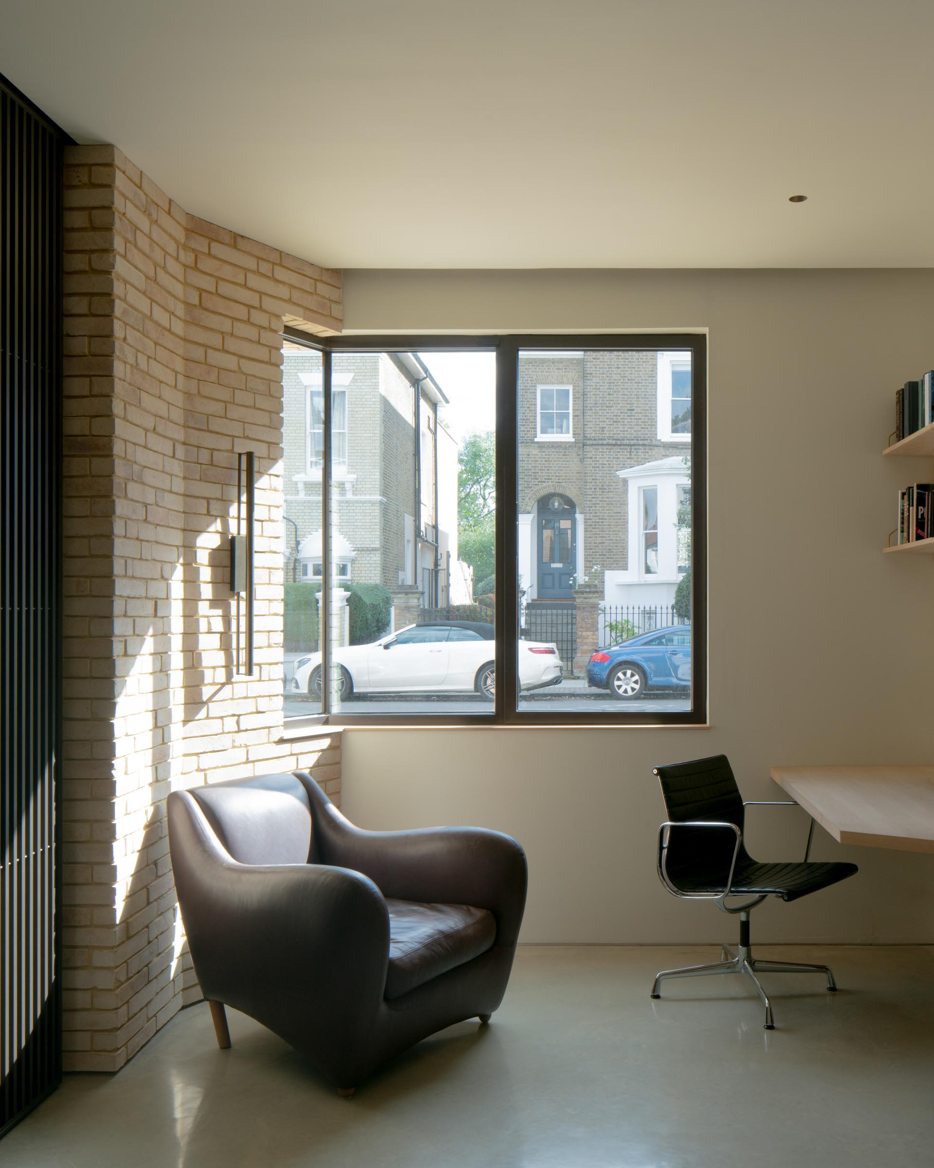 The selection of Vande Moortel NATURE7 Brick J underscores Studio AVC’s dedication to crafting a design that is both contemporary and contextually respectful. This handmade moulded brick breathes a natural warmth, making it an ideal match for the intricate Victorian brick patterns characteristic of the neighborhood. Its nuanced tones bridge the gap between the modern lines of the Frame House and the period detailing of adjacent properties. By integrating the NATURE7 Brick J into the design, Studio AVC created a façade that not only complements but elevates the local streetscape, bridging the gap between contemporary design and the traditional characteristics of the Victorian architecture surrounding it. According to Studio AVC, “the dog-tooth brickwork on the front elevation serves as a standout feature, drawing direct inspiration from the decorative brick patterns seen along the street. The angled geometry of the façade, meanwhile, subtly references the canted bay windows that are a hallmark of the area’s historic homes”.