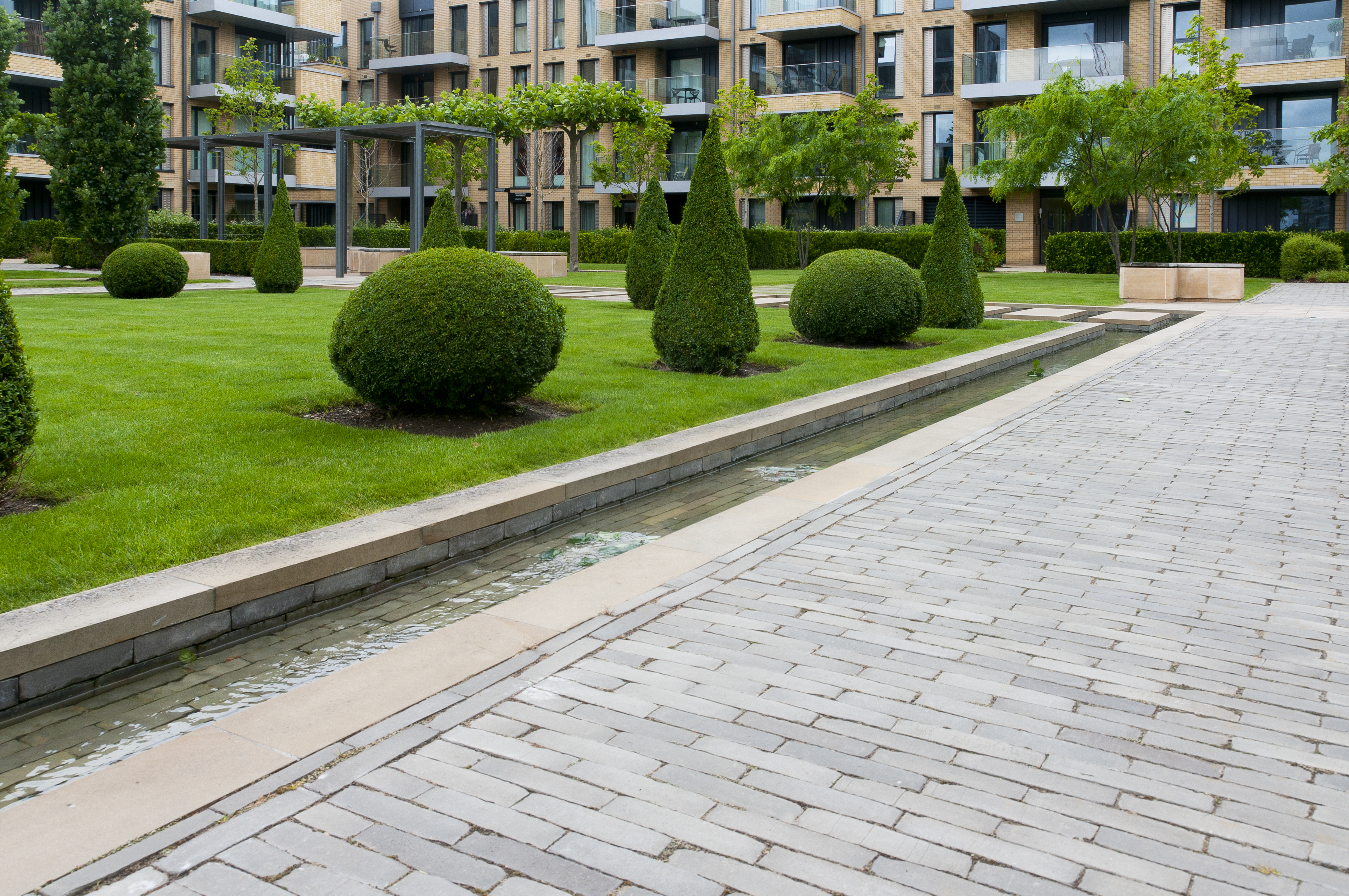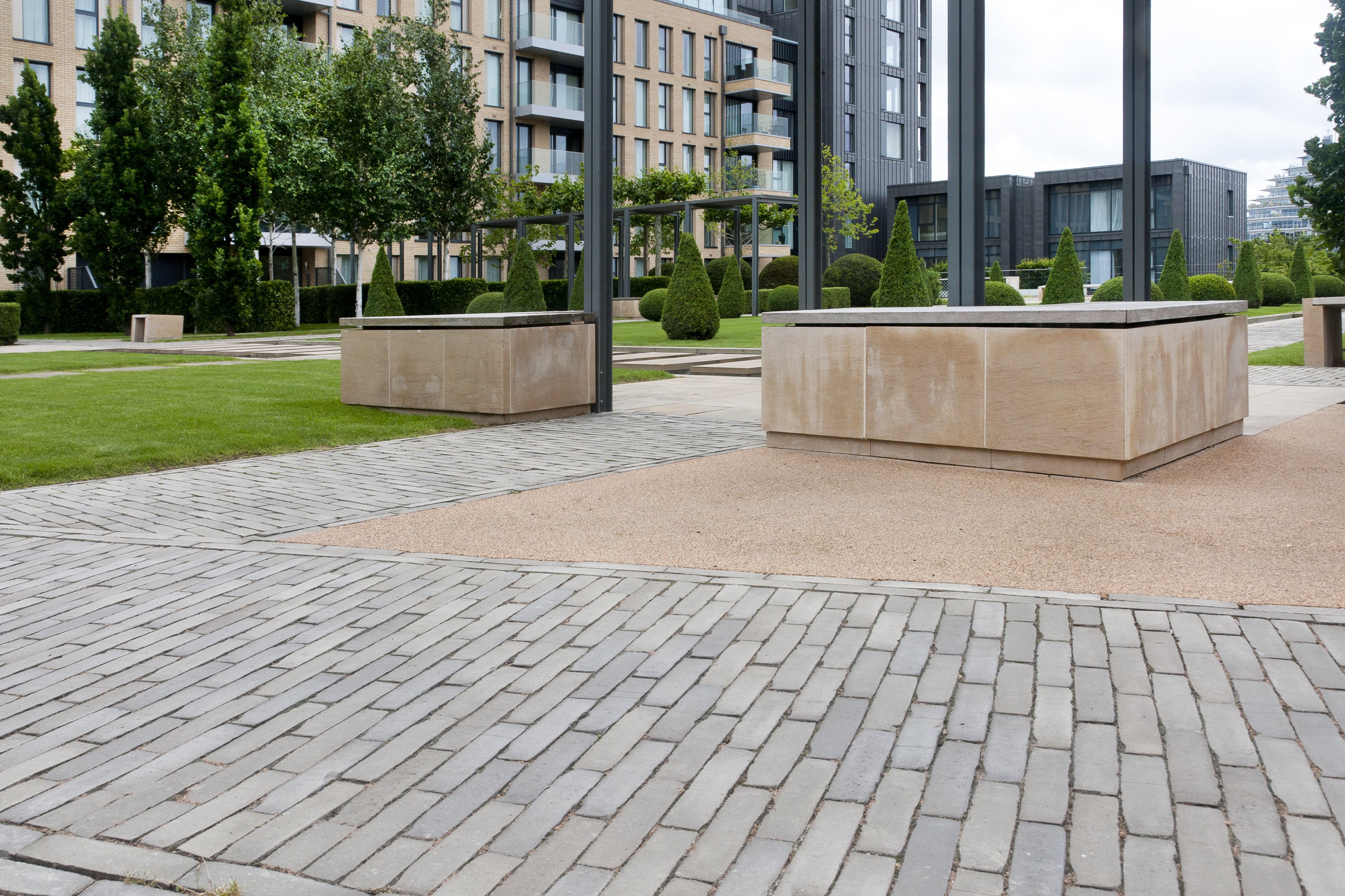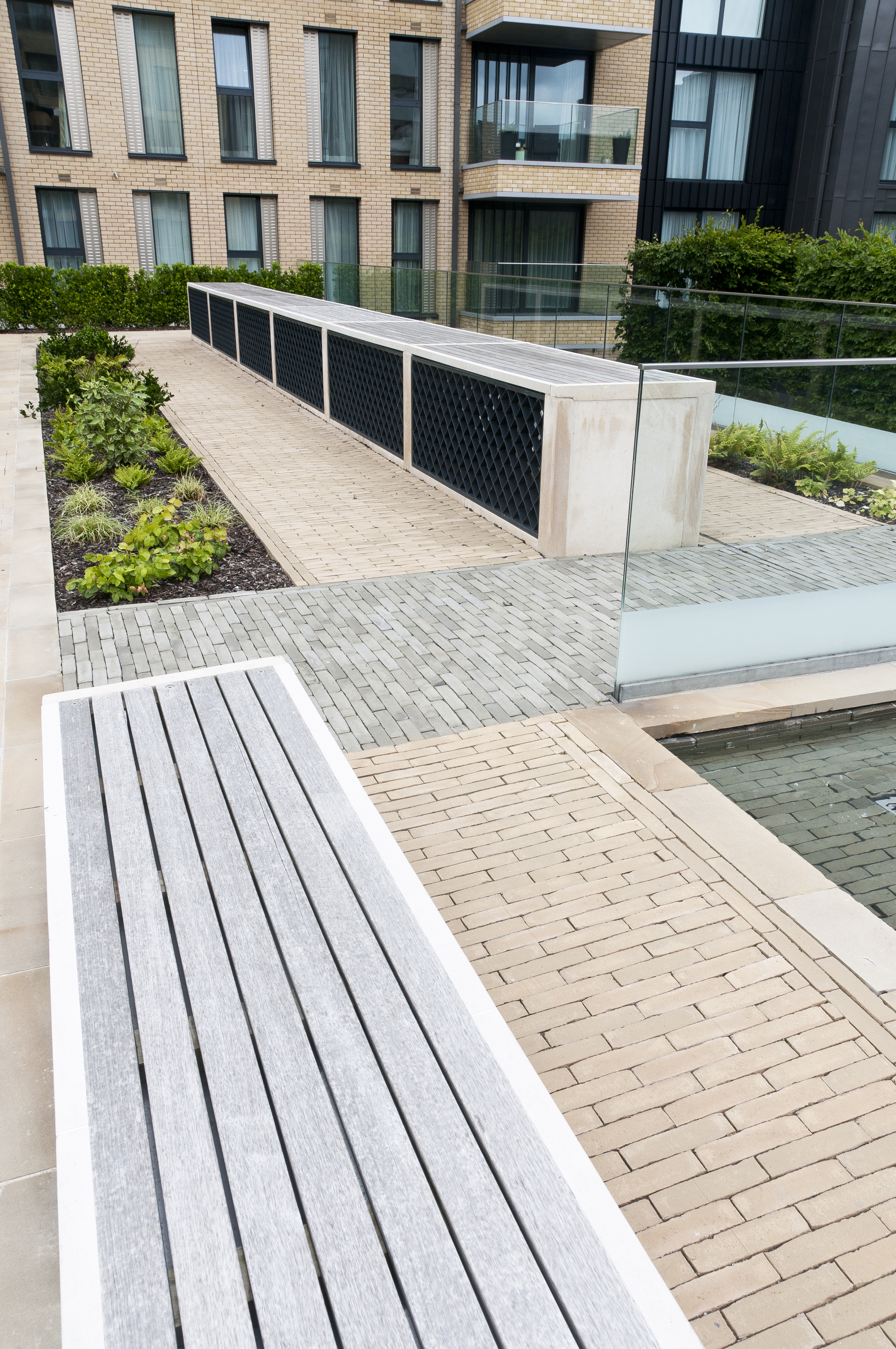 The multi-award-winning gardens at the centre of the development provide residents with a tranquil retreat where they can sit and relax. The concept is based on a series of various interlinked gardens on different levels, leading down towards the Thames.