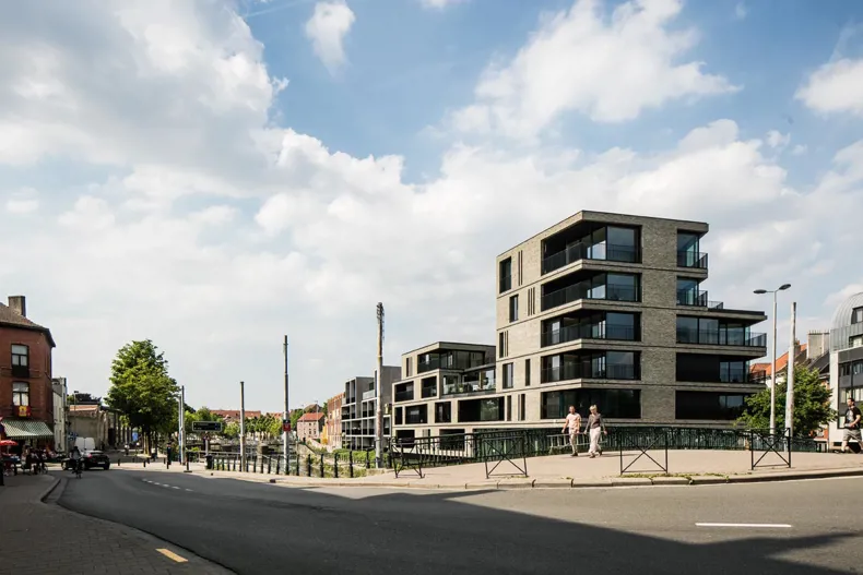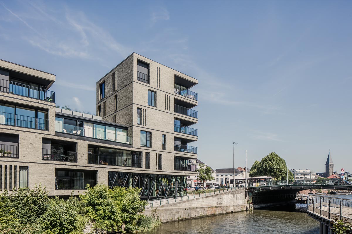 The Joremaaie project is located in Ghent city centre. It is the second project that CAAN architecten have carried out at this site for Lafaut Invest. The first project (Leiezicht Apartment Building) is located right next to this one. The third and latest project (Bord de Lys Apartment Building) is located a bit further along the street. The various projects are bordered by the river Lys and the Reke towpath along the western side.
