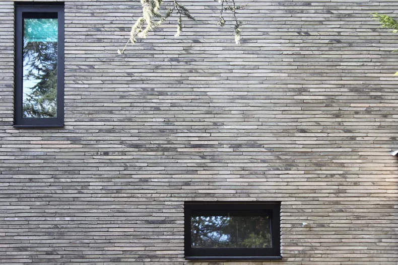 The whole villa is surrounded by greenery and consists in turn of three interconnected volumes, each of a different size and individually oriented within the garden. The legibility of this form and cautiousness regarding the spot where it stands have been emphasised by cladding the house in a single material: the green-grey facing brick infinitum 6013.