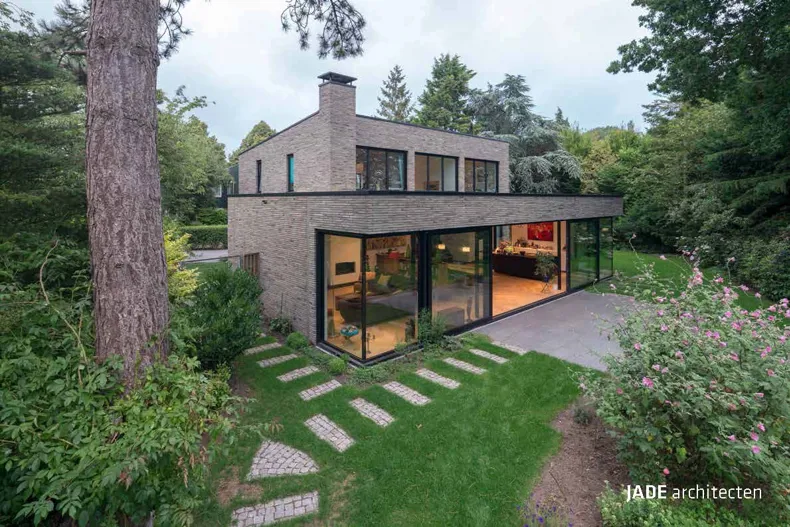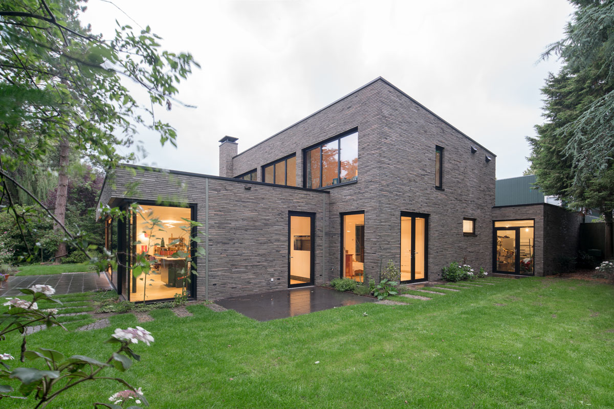 JADE architecten chose to transform the villa by using the green-grey facing brick infinitum 6013: “The design and material research resulted in the choice of a brick that embeds the house in its natural green surroundings which change with the weather and the seasons rather than one that would create contrasting façades. In addition, the Hand-Made character of the facing brick ties in with the natural character while the exclusivity of the long format fits the look of a villa.”