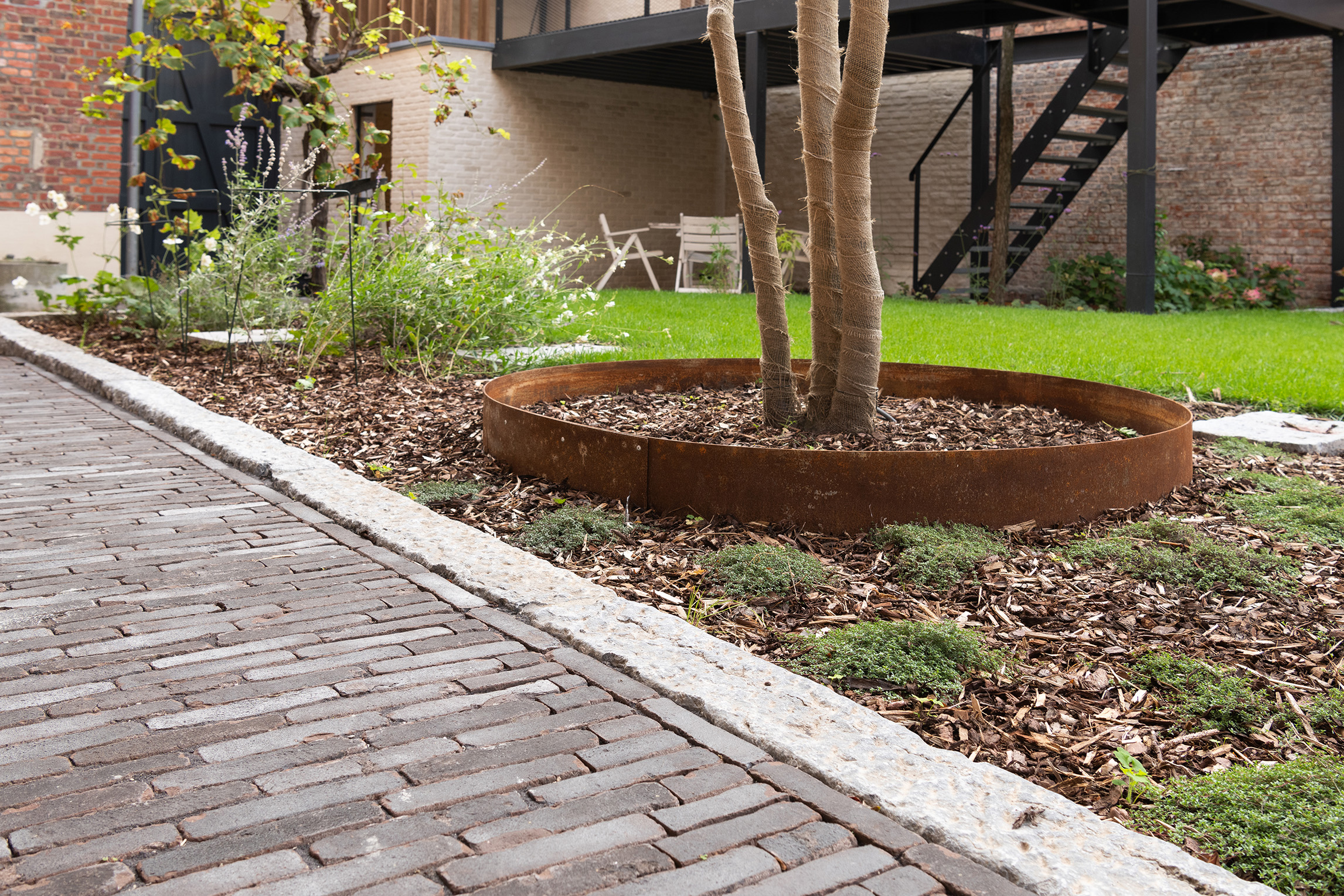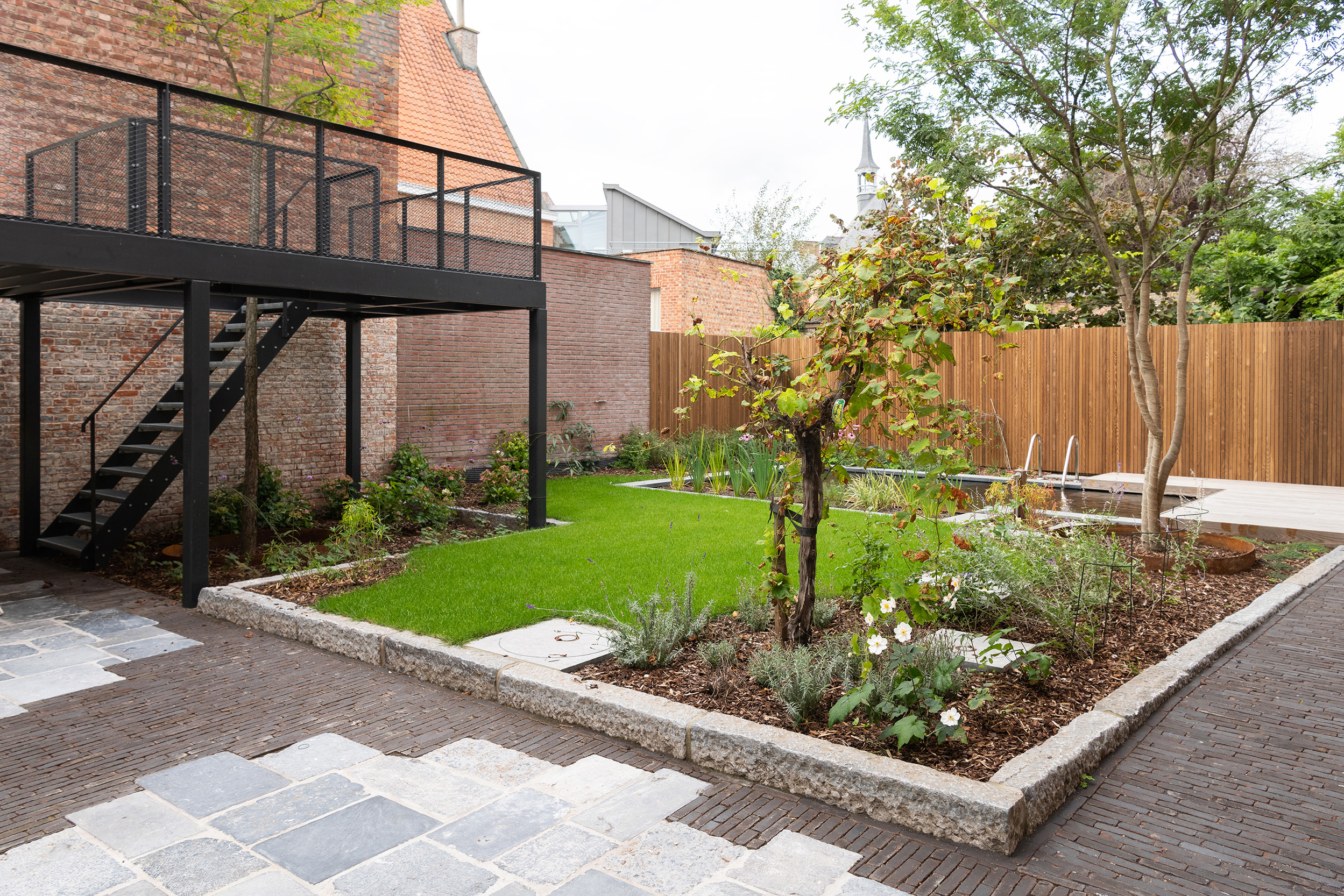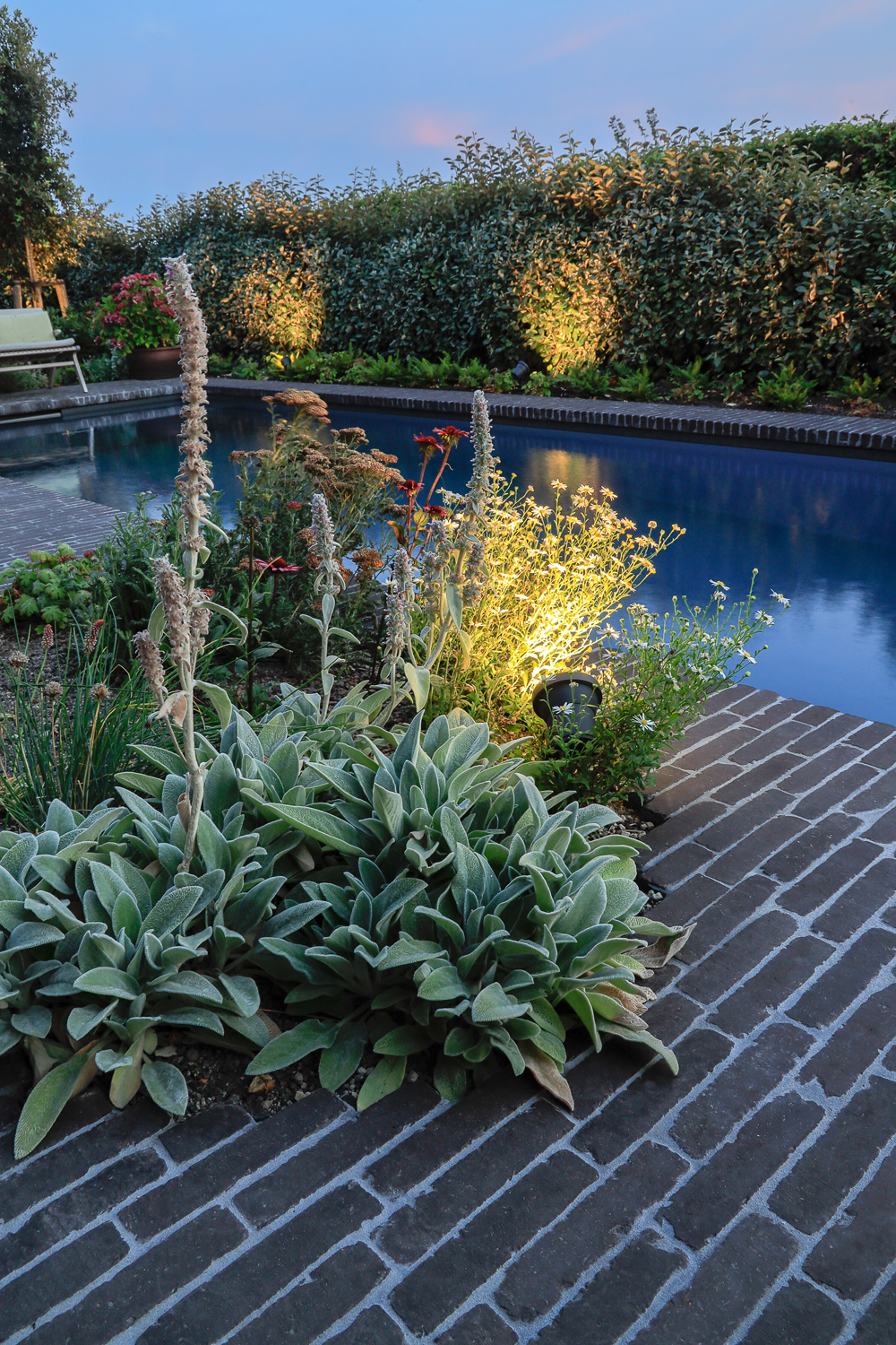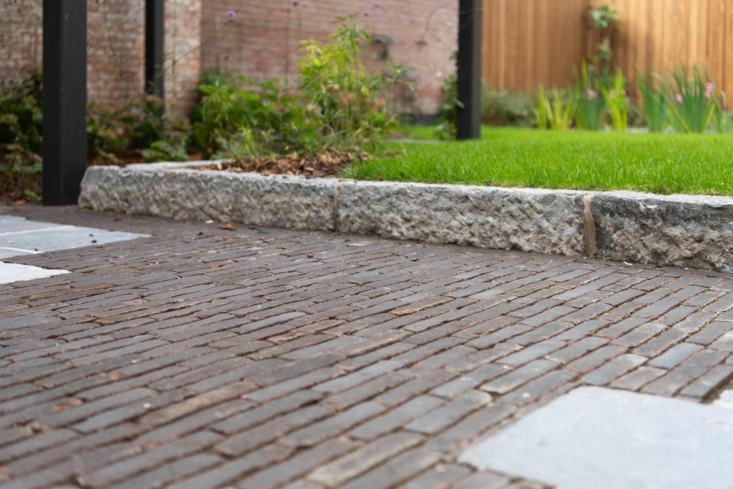 Stijn Ameloot created a garden design that featured an impressive interplay between the planting, the clay pavers and the swimming pool. The precise, detailed, high-quality finish is ensured by a combination of features including the creative and playful borders and the beautiful monolithic edging around the swimming pool, constructed using mitre-cut SeptimA Onyx clay pavers bonded and laid on edge.
