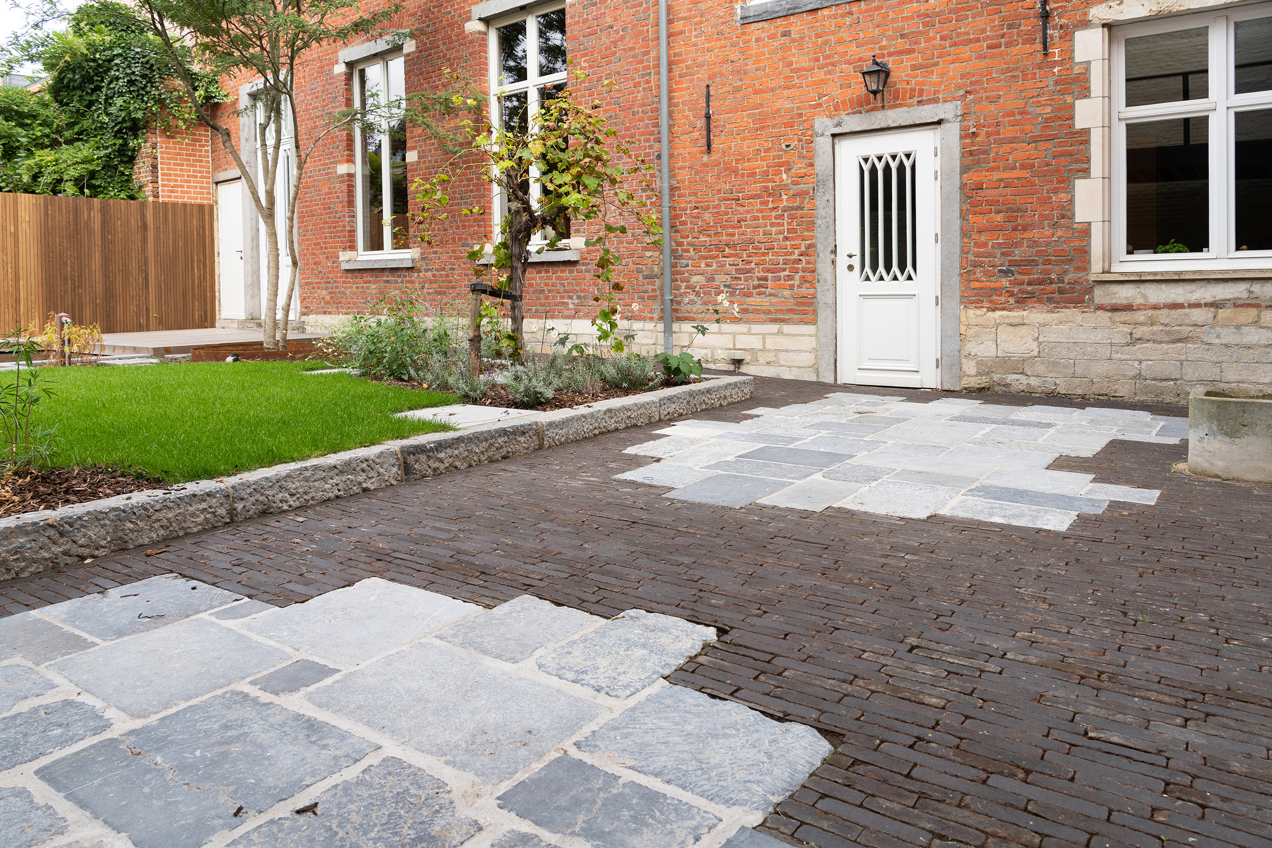 Both the client and Stijn Ameloot were immediately struck by the new Onyx clay paver with its natural patina which matched up to everyone’s expectations perfectly. The combination of this dark paver with the anthracite-coloured swimming pool and the gazebo in black cedar wood turned out to be a good choice. Interspersed in the carpet of clay pavers are recesses designed to serve as plant beds: their clever design makes it look as if the plants have grown up between the clay pavers all by themselves.