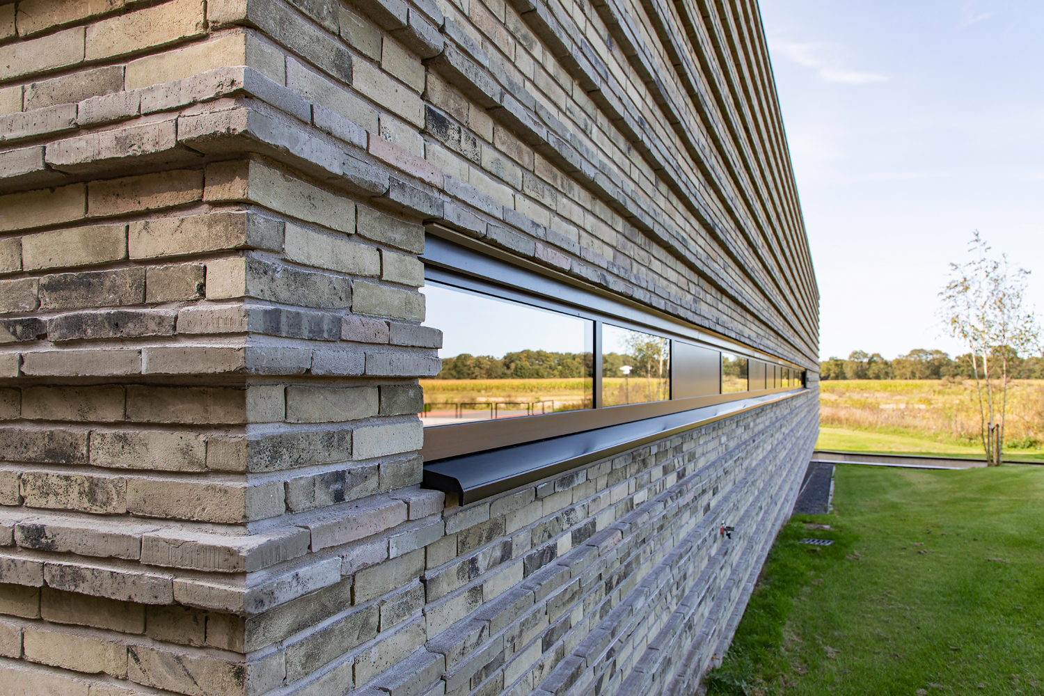 The special brick bond was chosen to form a pattern of horizontal lines and create a vibrant façade. The ecological Nature7 Brick R brick and the thin, long linea 7036 turned out to be the right combination for this. Their green-grey colour blends beautifully together while the different formats are a vital part of the intended relief pattern.