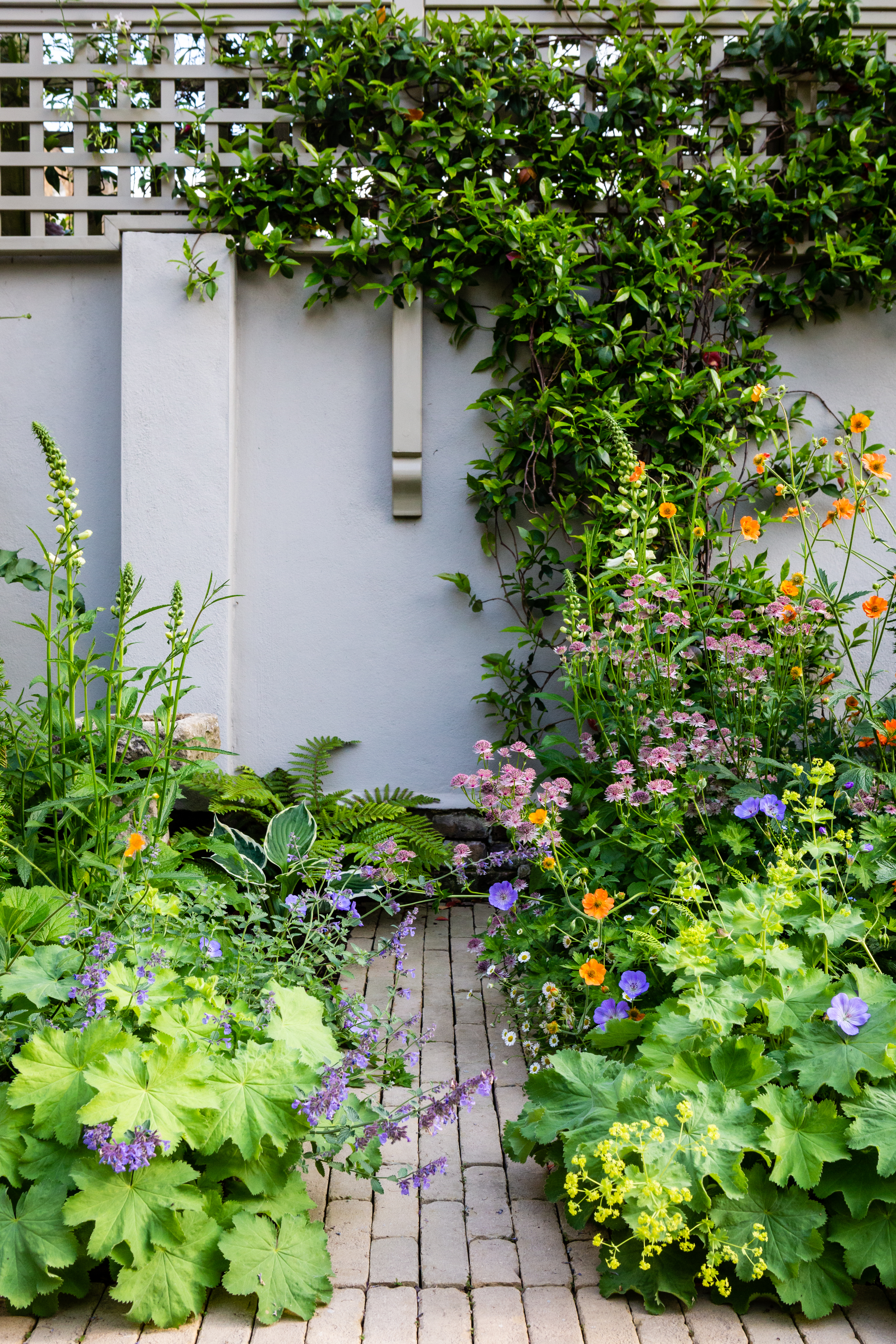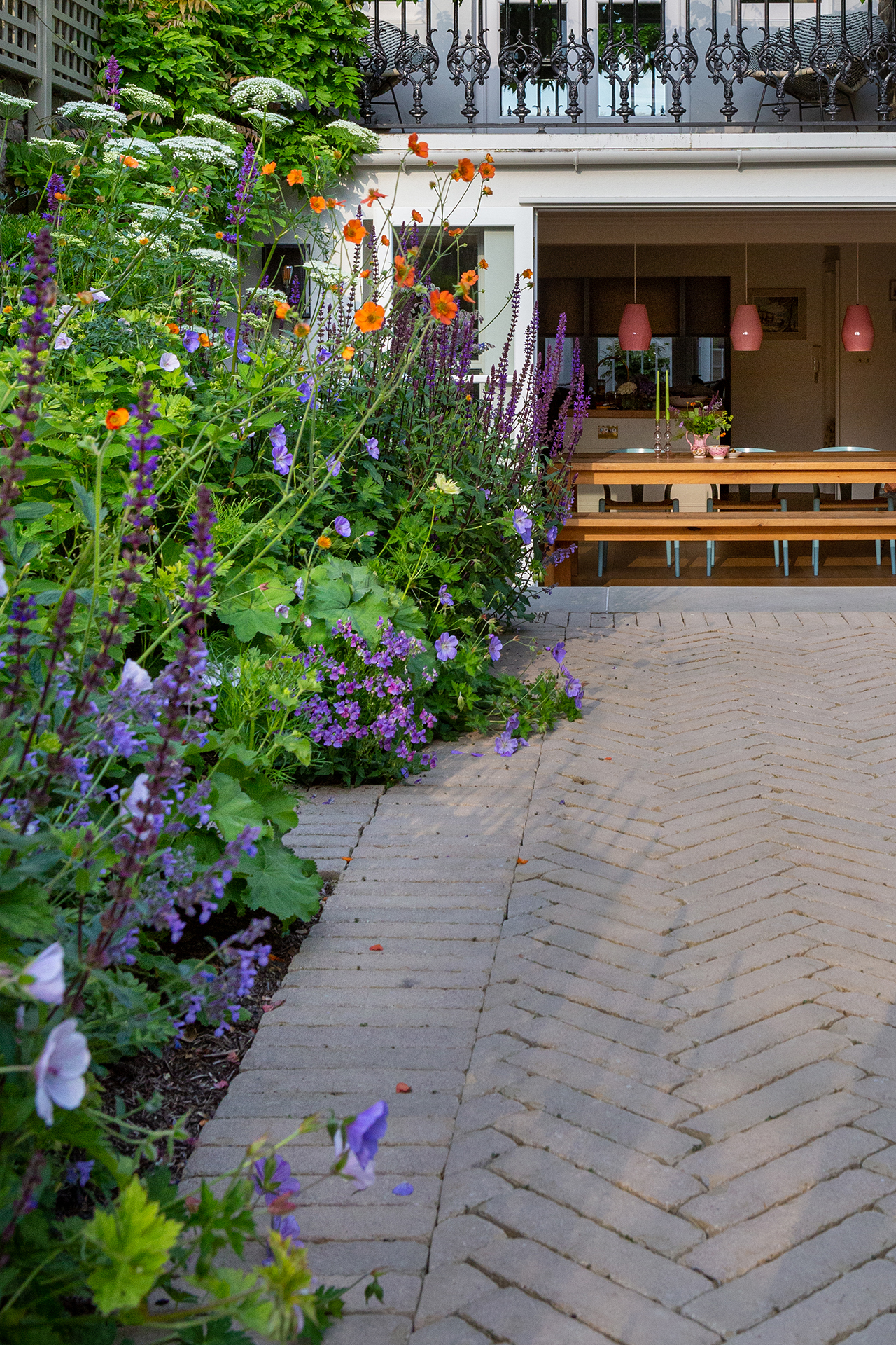 Michael Darvill: “We worked with Butter Wakefield Garden Design to create a relaxed and family friendly space for entertaining, and spending time together. A place they could enjoy both growing and cutting flowers. The lawn was replaced by Vande Moortels, used to create magical pathways edged with soft romantic planting.
