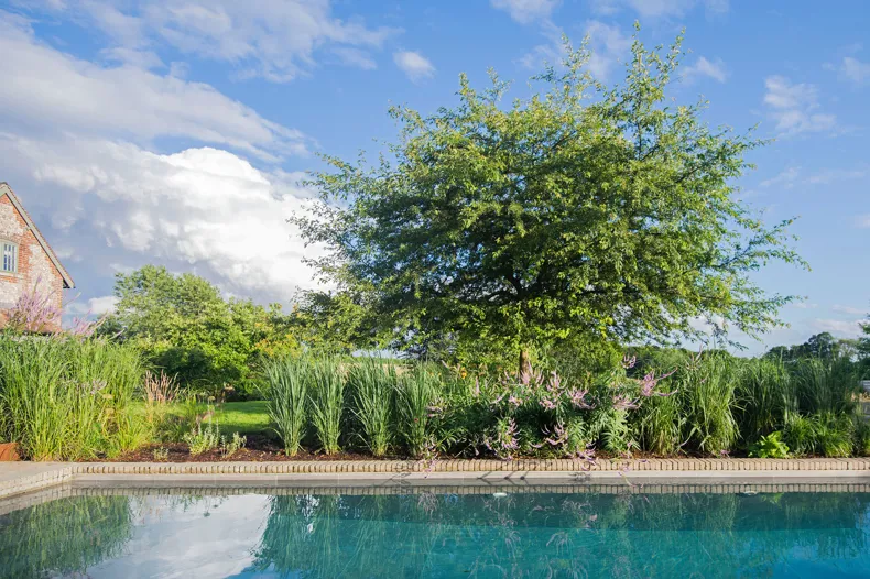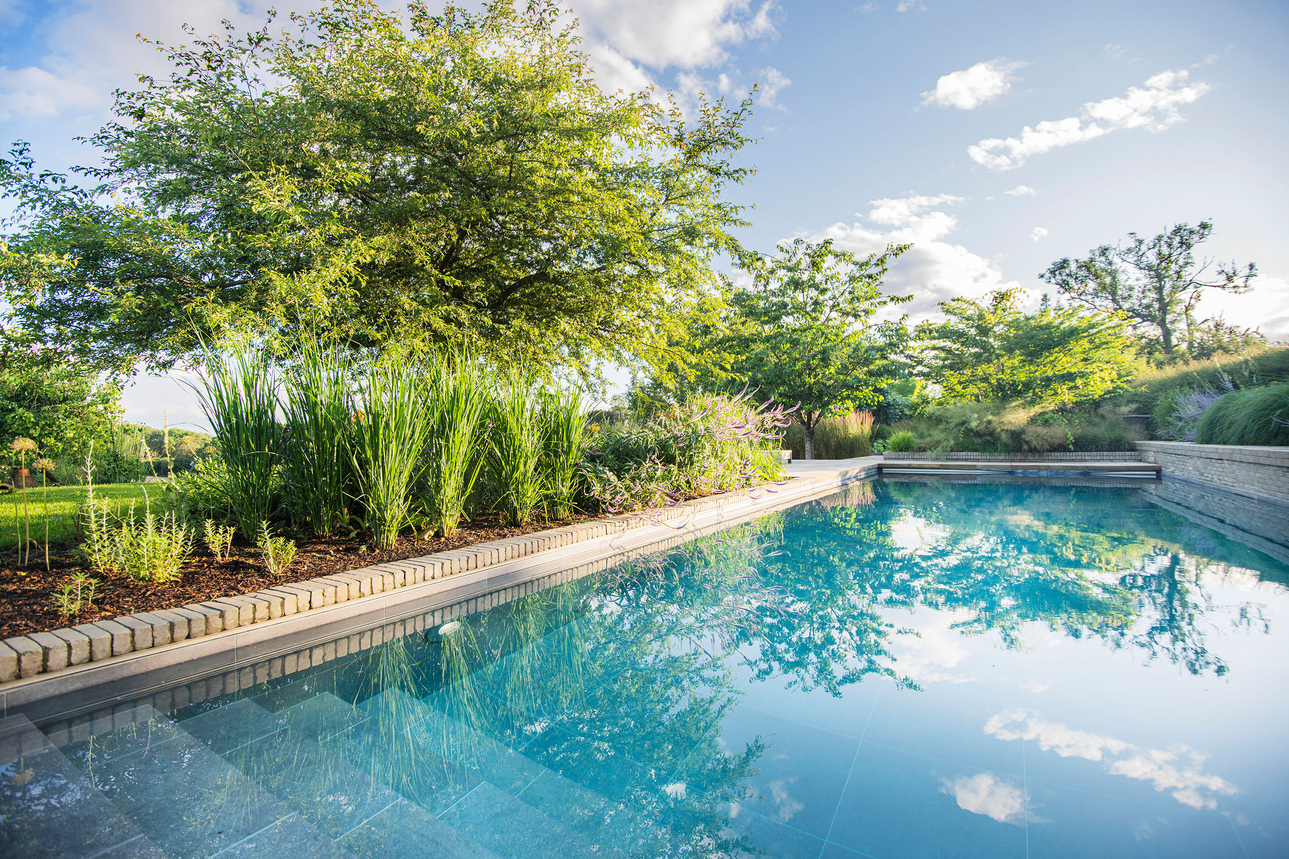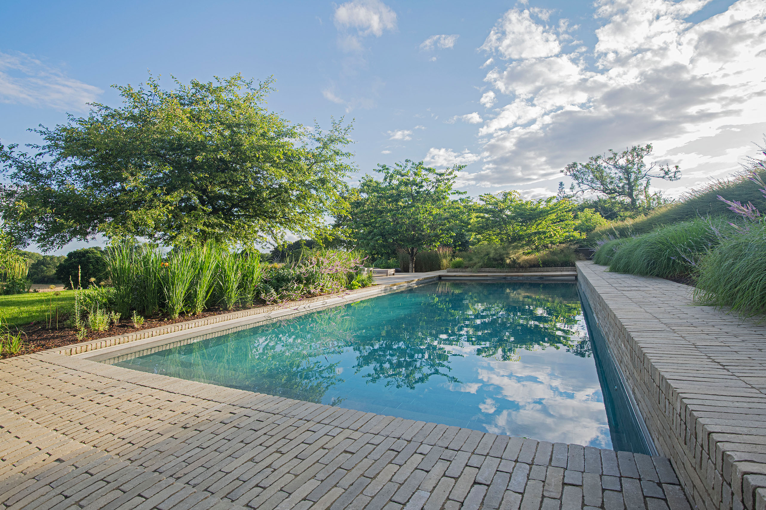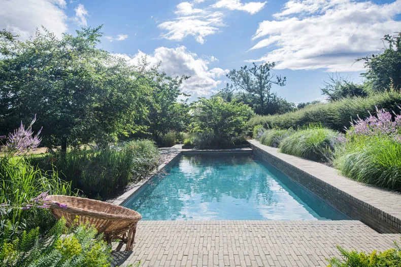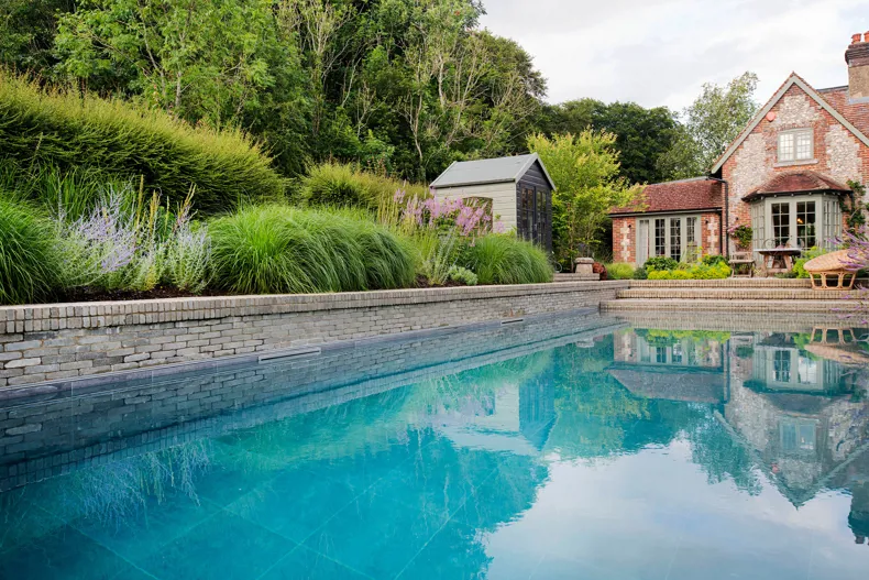 Charlotte Rowe: “We wanted the hard landscaping for the terrace and around the pool to have more texture than if we had simply used sandstone paving and we feel that this has been achieved by using the SeptimA Olive clay pavers.