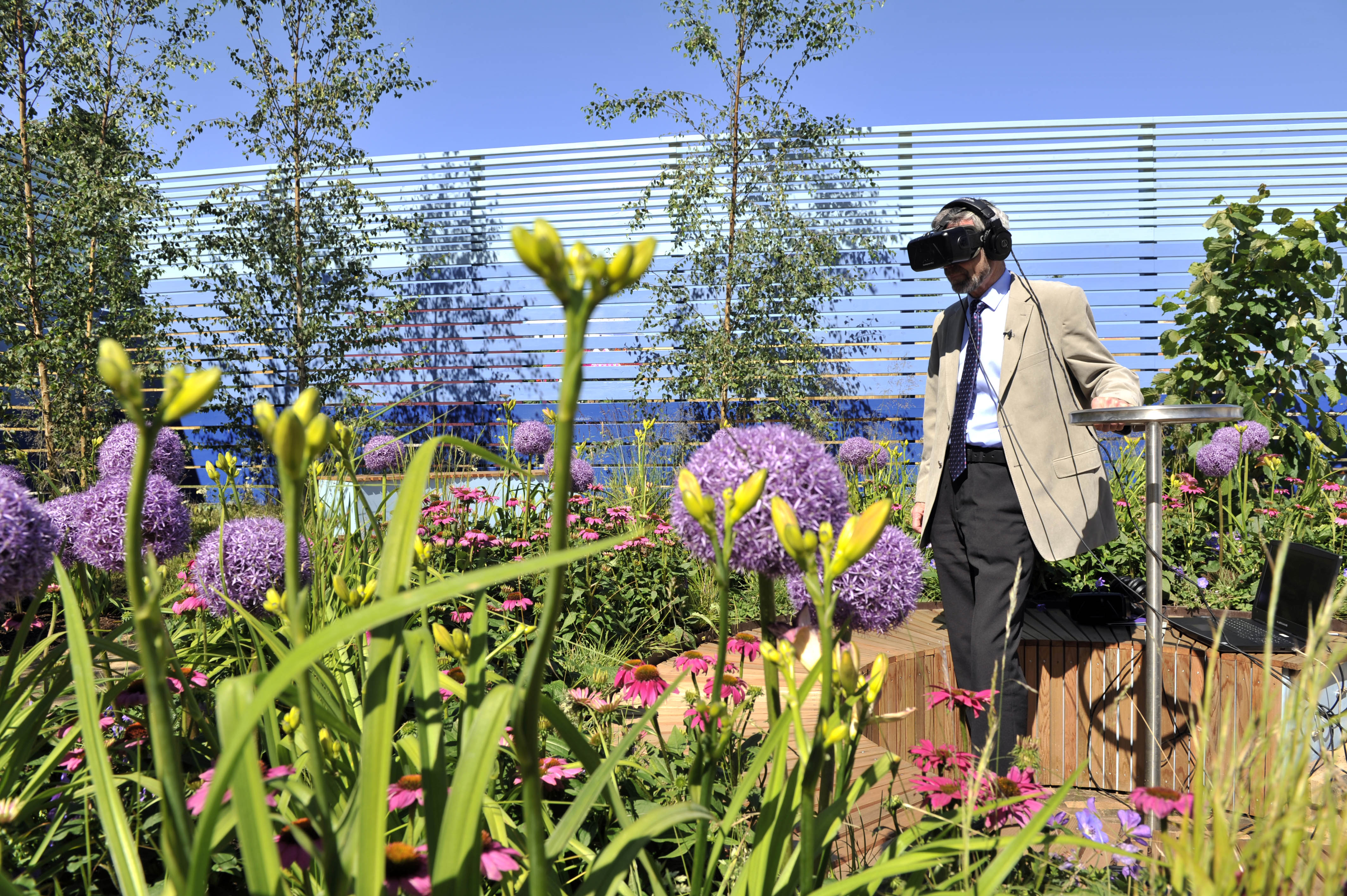 Visitors to the Show Garden were invited to walk into a stunning physical space created by designer Antonia Young, which will use Echinacea, Alliums, Geraniums and Hemerocallis as core flowers, alongside more naturalistic planting representing a classic British hedgerow or woodland edge. Visitors were then given the opportunity to put on a headset and be transported to the virtual reality tribute garden.