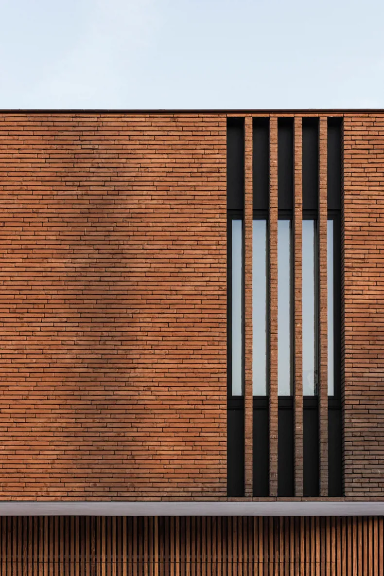 It did not take long to single out the narrow facing brick linea7 8012 for strengthening the architectural added value, by accentuating the horizontal character of the design, for instance. The finish using thin bed mortar was an obvious choice which is easy to apply with this facing brick. The windows on the front and side façades are partly covered with ‘vertical brick slats’, making them an integral part of the whole. The vertical architectural lines are also repeated in the wooden slats of the garage door and create a harmonious visual expression.
