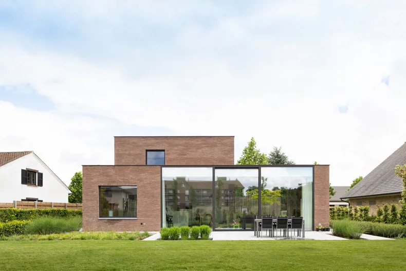 This modern villa is situated in a residential district from the 1960s. The original house was demolished in order to build a villa which complied with all the current energy standards. The result: an NZE house with an energy level of E16 which focuses on the aesthetic details. Over the years, the district has become part of the urban fringes of Harelbeke and the detached house is fully integrated in its environment.
