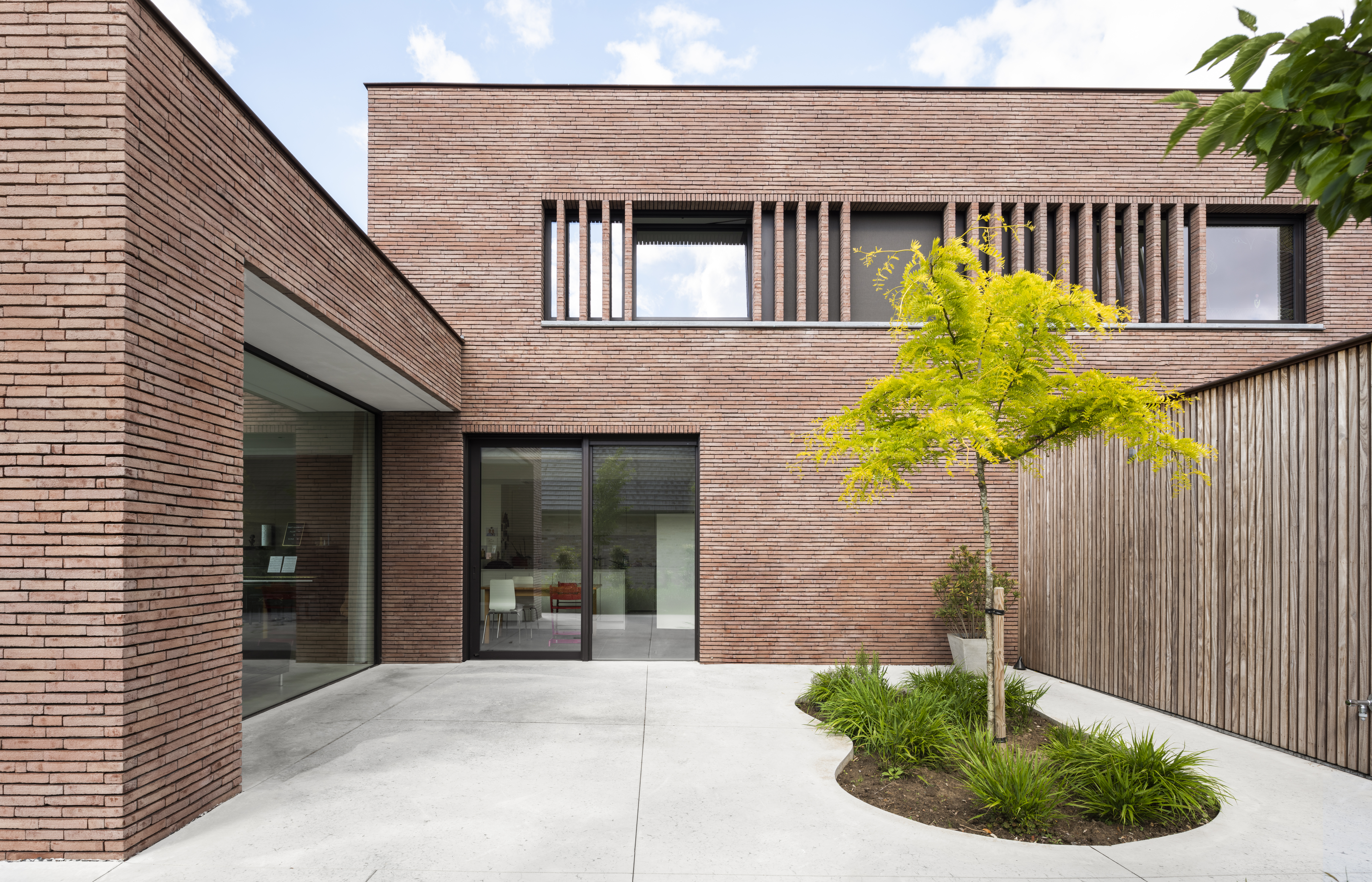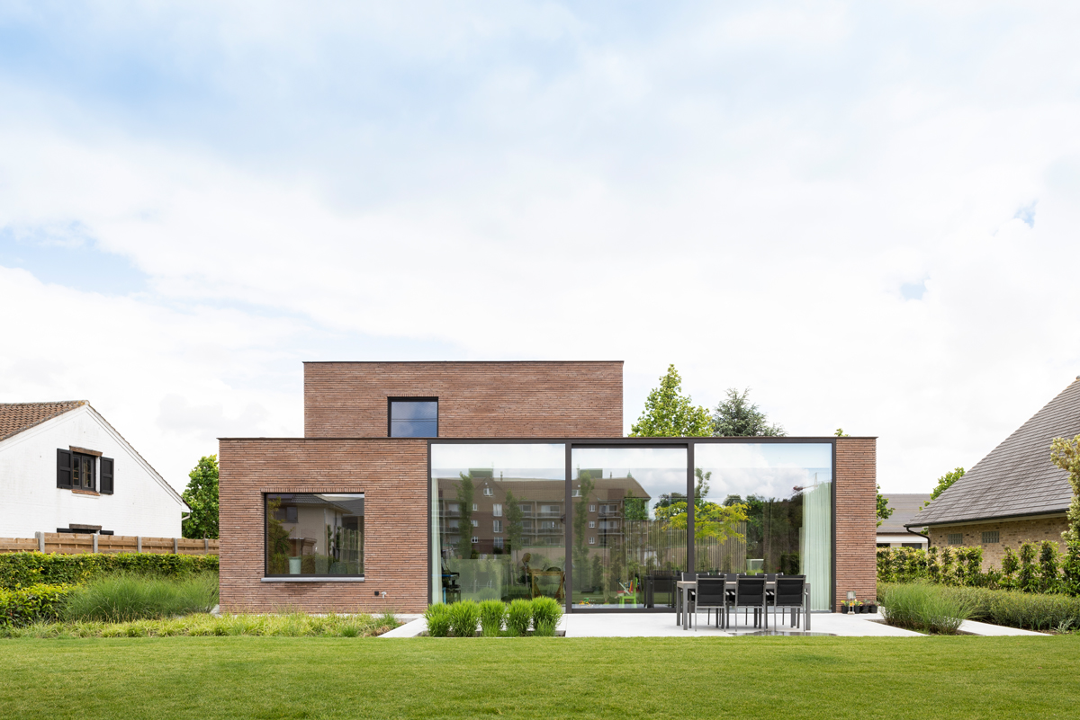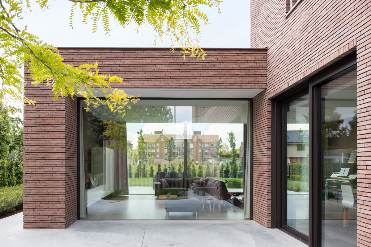 It did not take long to single out the narrow facing brick linea7 8012 for strengthening the architectural added value, by accentuating the horizontal character of the design, for instance. The finish using thin bed mortar was an obvious choice which is easy to apply with this facing brick. The windows on the front and side façades are partly covered with ‘vertical brick slats’, making them an integral part of the whole. The vertical architectural lines are also repeated in the wooden slats of the garage door and create a harmonious visual expression.