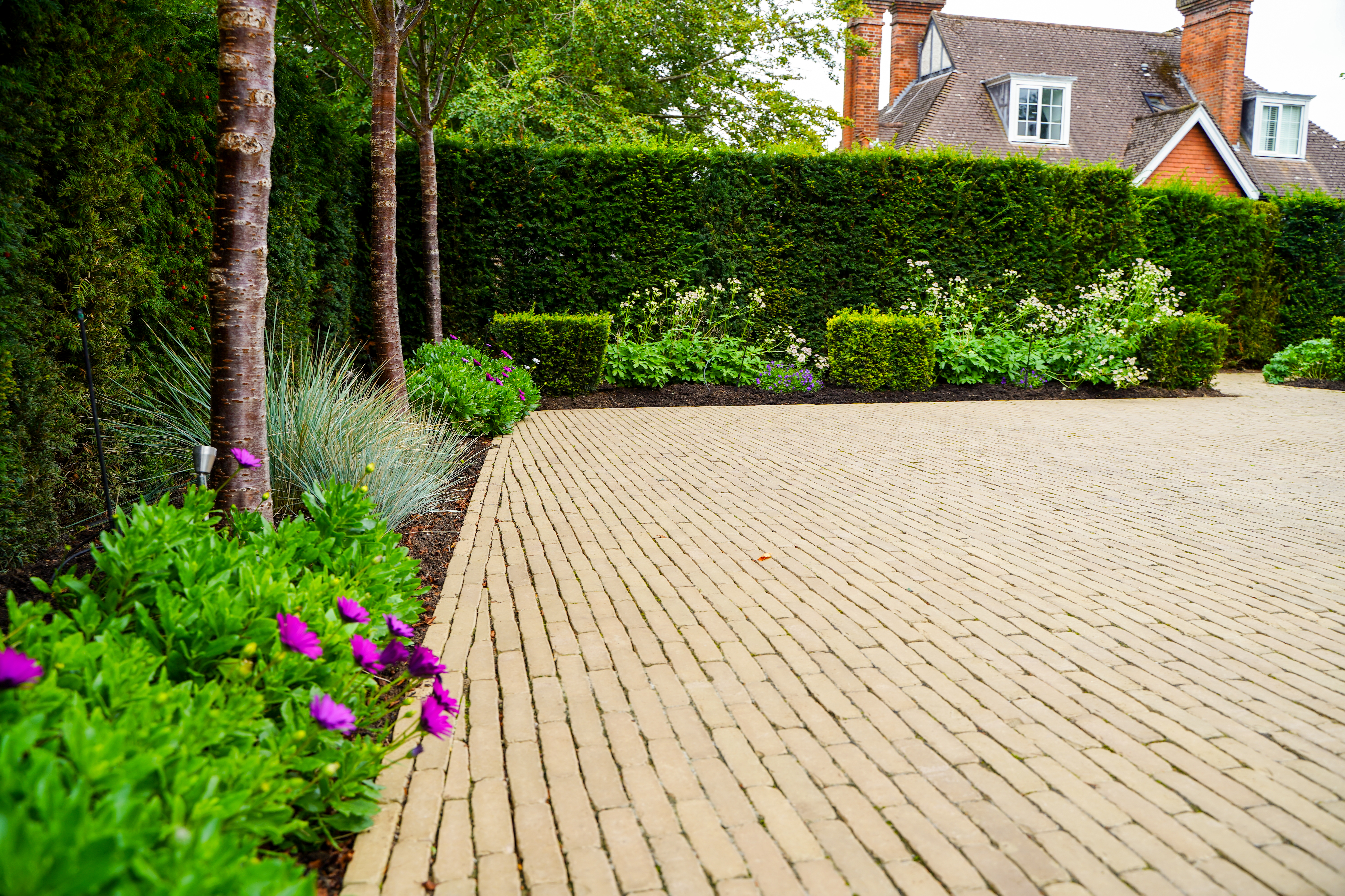 Edging can vary from single kerbstones (a row of clay pavers perpendicular to the bond) supported by sand cement for terraces and footpaths to prefabricated linear concrete elements for driveways and parking areas. Other linear materials can also be used but the edging should always be adequately supported using sand cement.