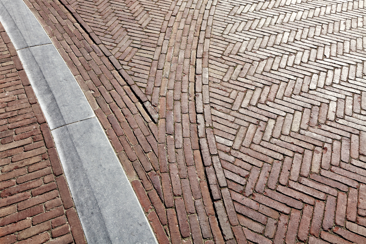 The clay pavers are placed loose against each other with a minimum joint (2 to 3 mm) by means of the click & drop method. By first tapping the pavers together and then lowering them onto the paving layer, the correct joint thickness is automatically achieved and the paving layer remains untouched. If necessary, a slightly wider joint can be used from time to time in order to maintain the bond. Laying the clay pavers so that they are pressed against each other is strongly advised against in order to avoid edge damage.